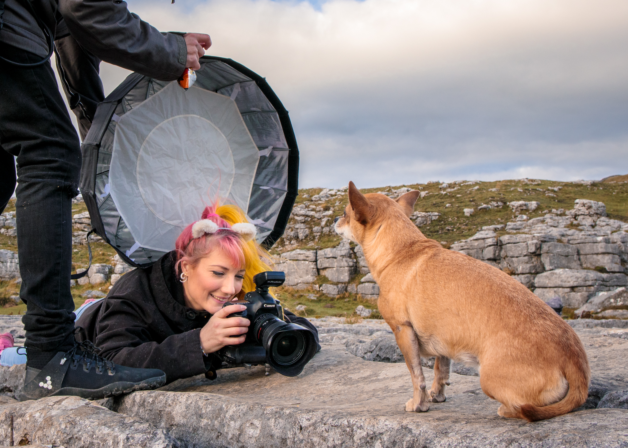 This is the view you are likely to see when you have a session with us! You will notice that the magic comes together thanks to Cat’s creative and technical skills as well as her understanding of dogs. When you see the final images, you would never know the detailed construction that goes in behind them. Here’s a peek behind the curtain…